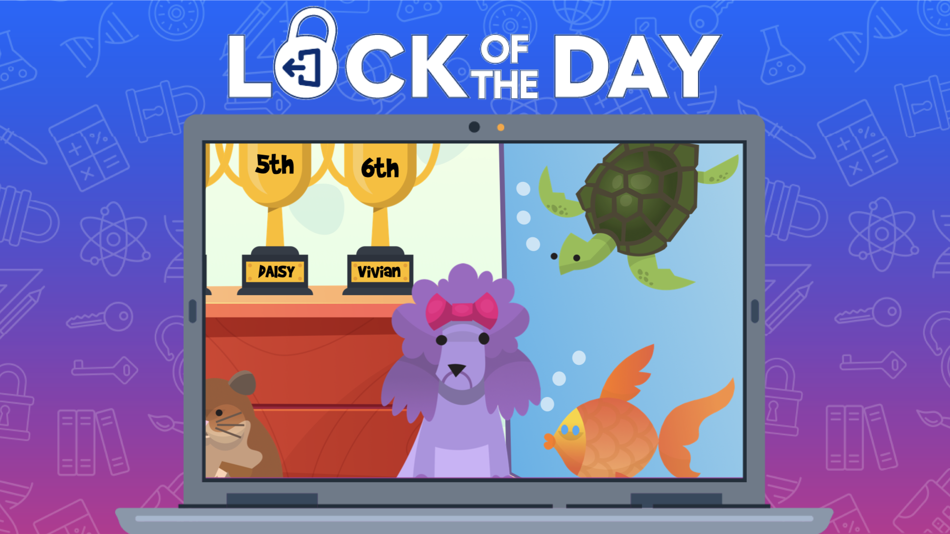 The animals are waiting for the trophies to be passed out, but as no one is wearing name tags, how do we know who gets which trophy?