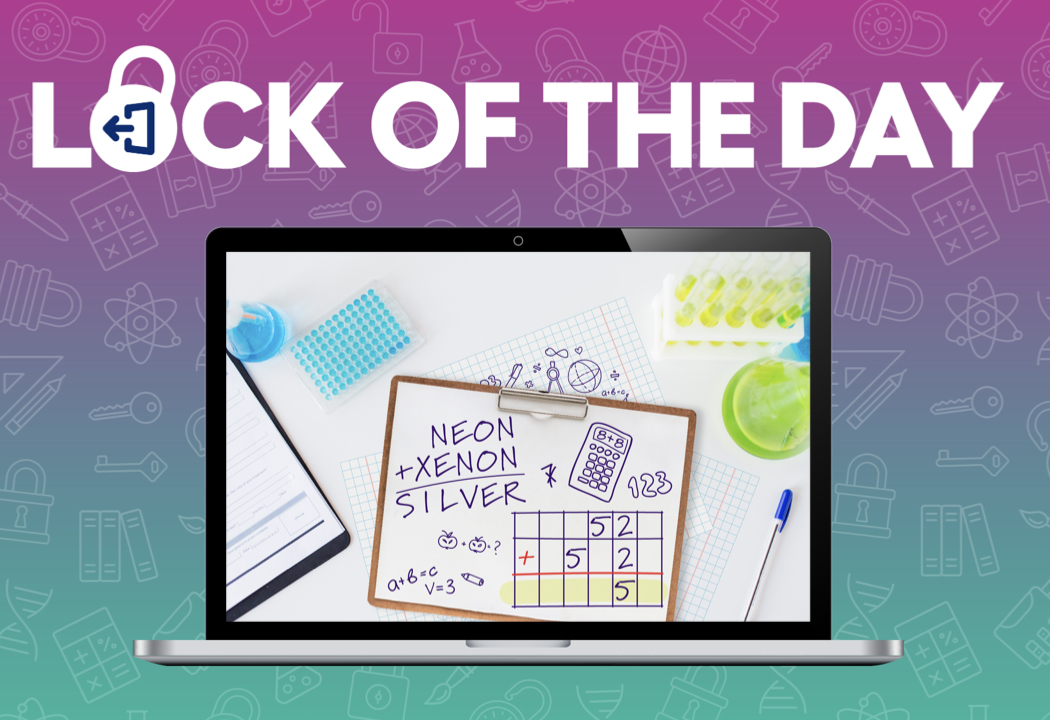 We are learning about Noble gases, but this seems to be a puzzle and not a true formula! The room is locked and it appears the code may be the numbers in yellow.
