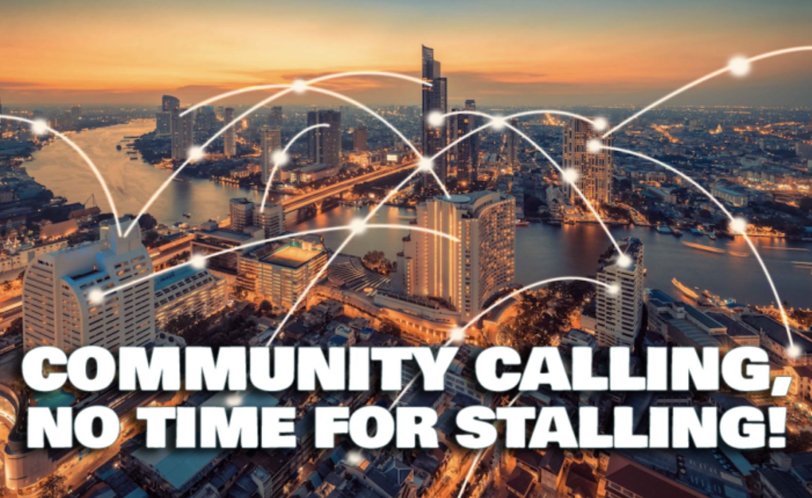 COMMUNITY CALLING, NO TIME FOR STALLING!