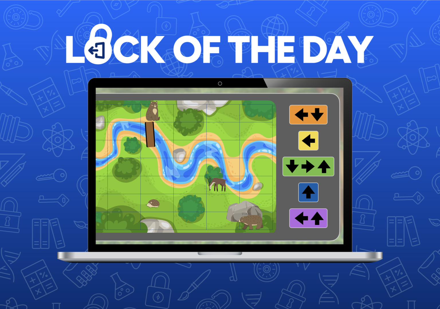 Brown bear is very friendly, and while he needs to reach his bear friend on the other side of the steam, he wants to visit all the other animals hanging around his side of the stream first, and just f
